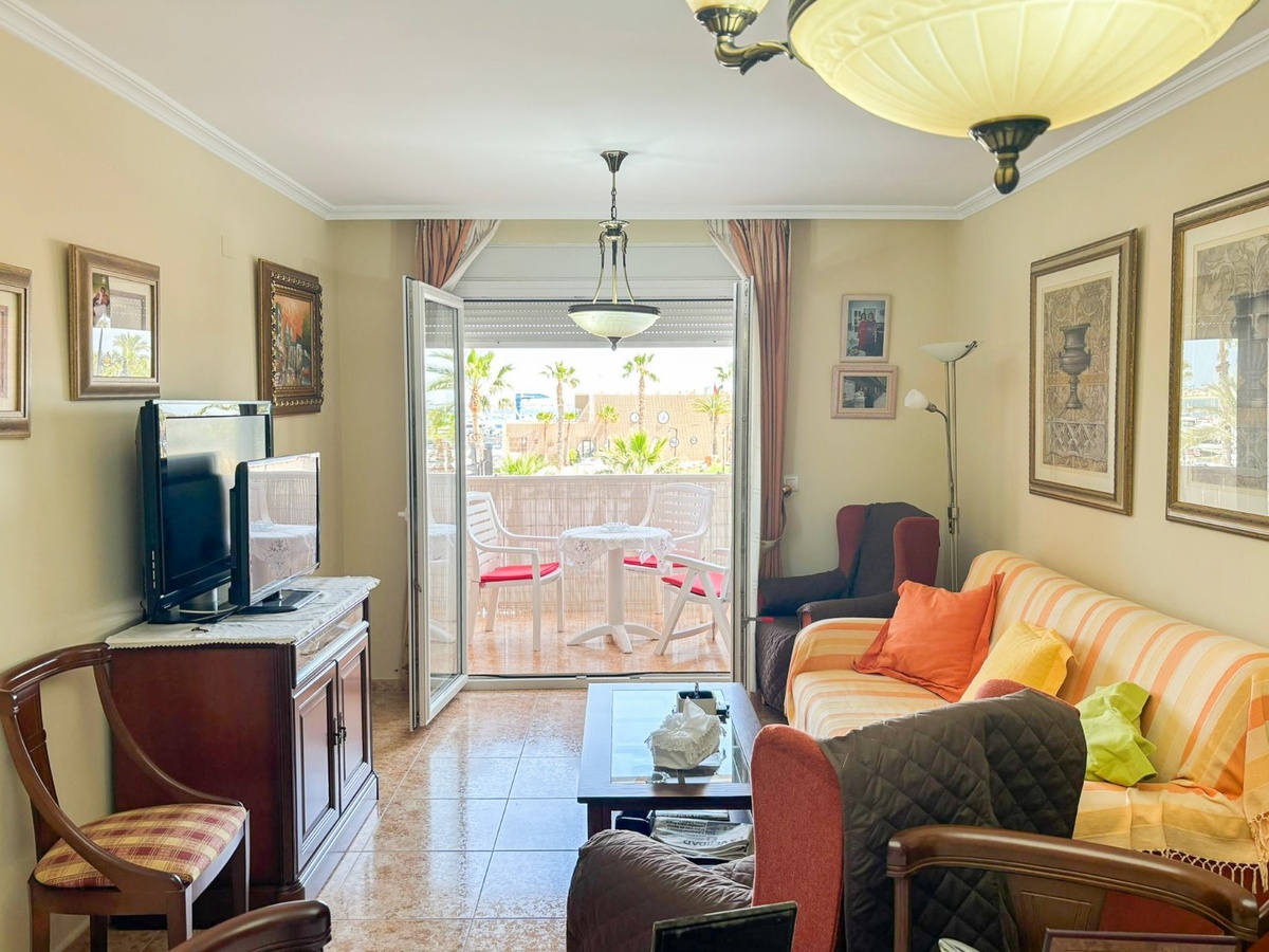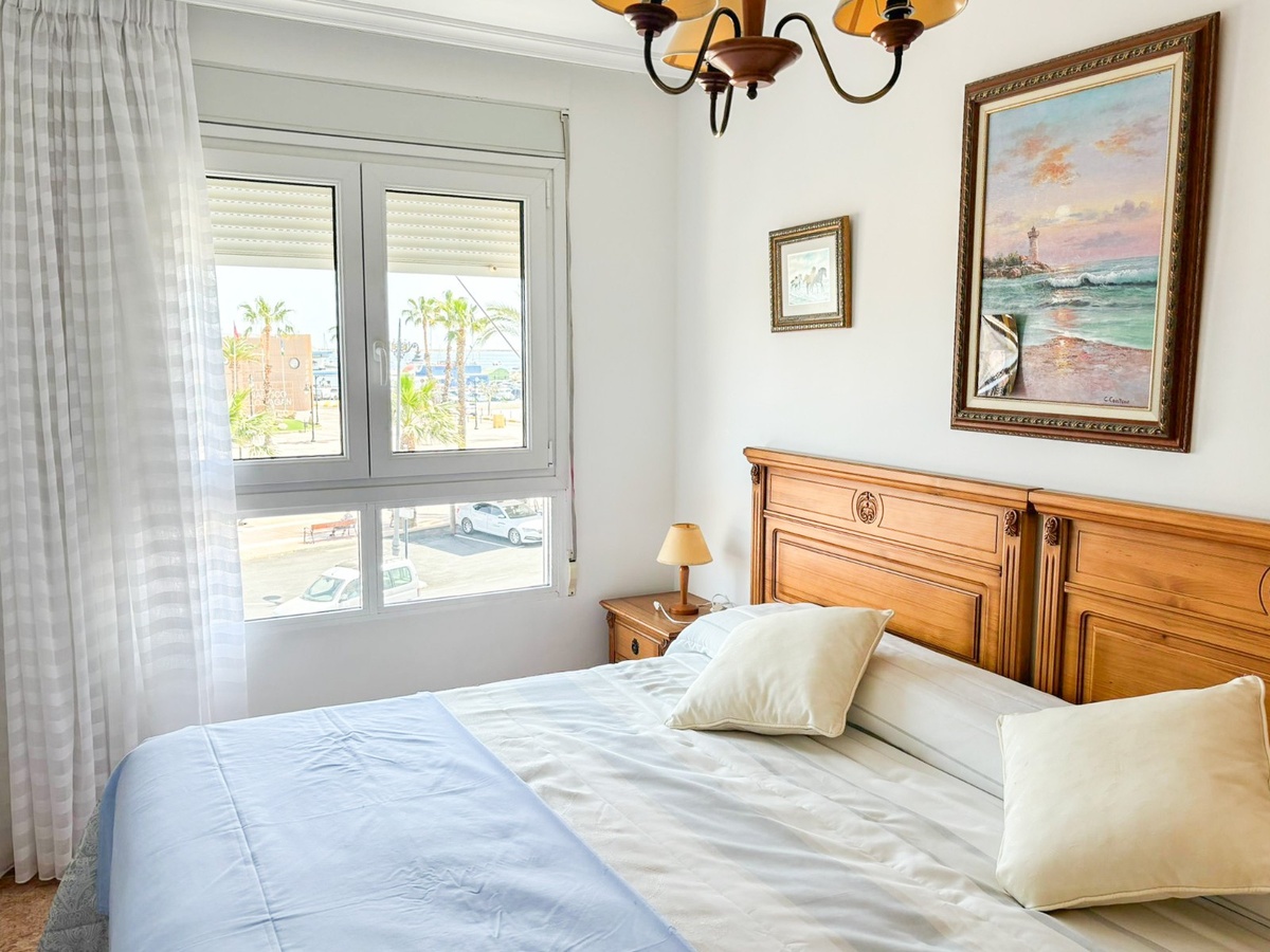 Discover this spacious first-floor apartment with 100 m² built area , located just 50 meters from the port of Lo Pagán . The property has 3 bedrooms and 2 full bathrooms , offering the perfect space both for a permanent residence or for enjoying holidays by the sea. Built in 1998 , it is in excellent condition and is sold furnished . It has a large terrace with unobstructed views of the port , a separate kitchen , a laundry room , a storage room , and a magnificent private solarium to make the most of the Mediterranean climate. In addition, it includes a private garage , which adds comfort and exclusivity. Its east orientation guarantees luminosity for much of the day, making it a unique opportunity on the Costa Cálida .